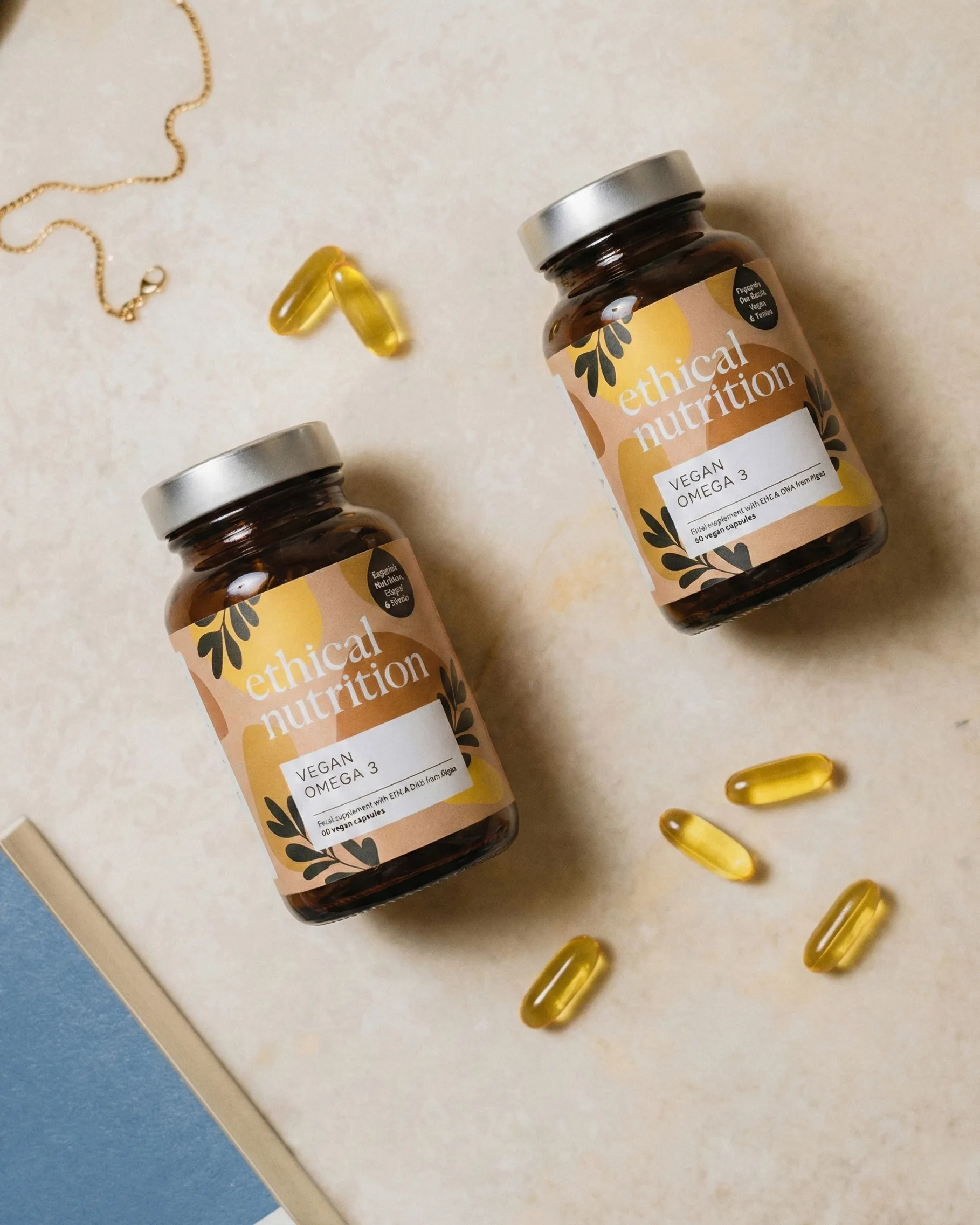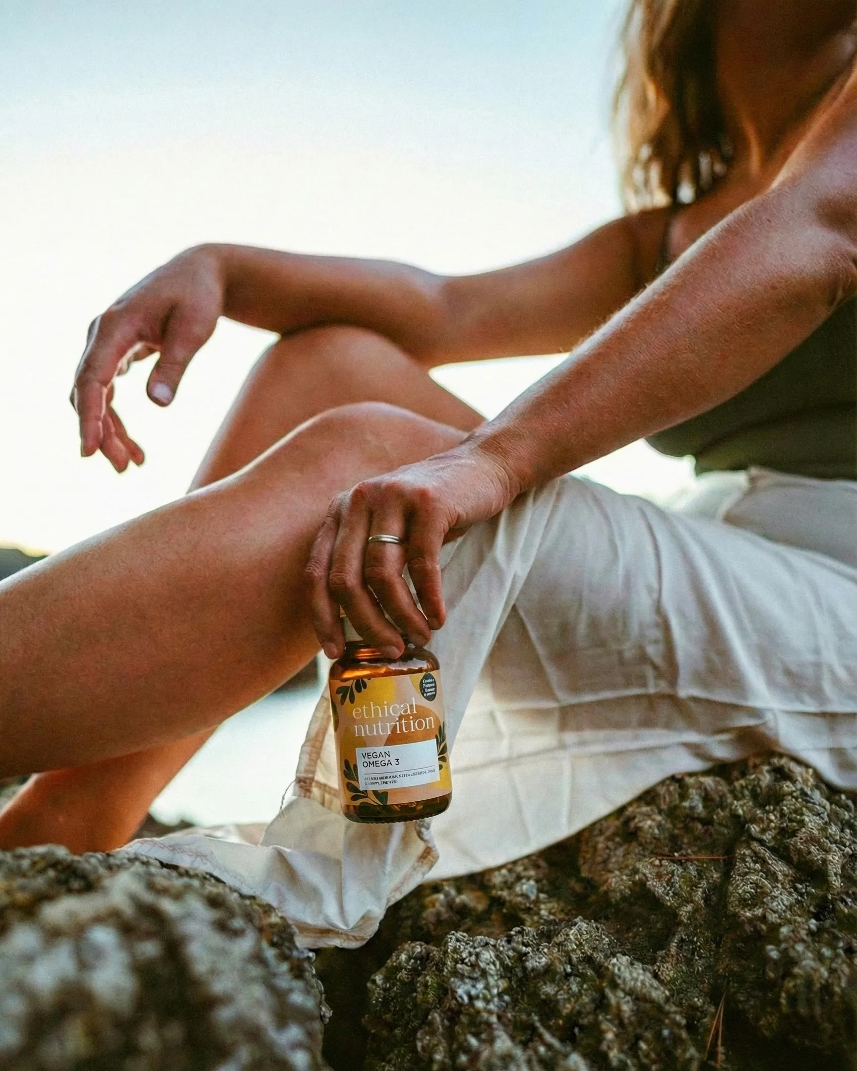 AI-generated campaign visuals for Ethical Nutrition — a plant-based supplement brand focused on everyday wellbeing. This visual series places the product across natural lifestyle moments and clean editorial compositions, combining warm sunlight, organic textures, and minimal product styling to reflect the brand’s calm, nature-led identity.