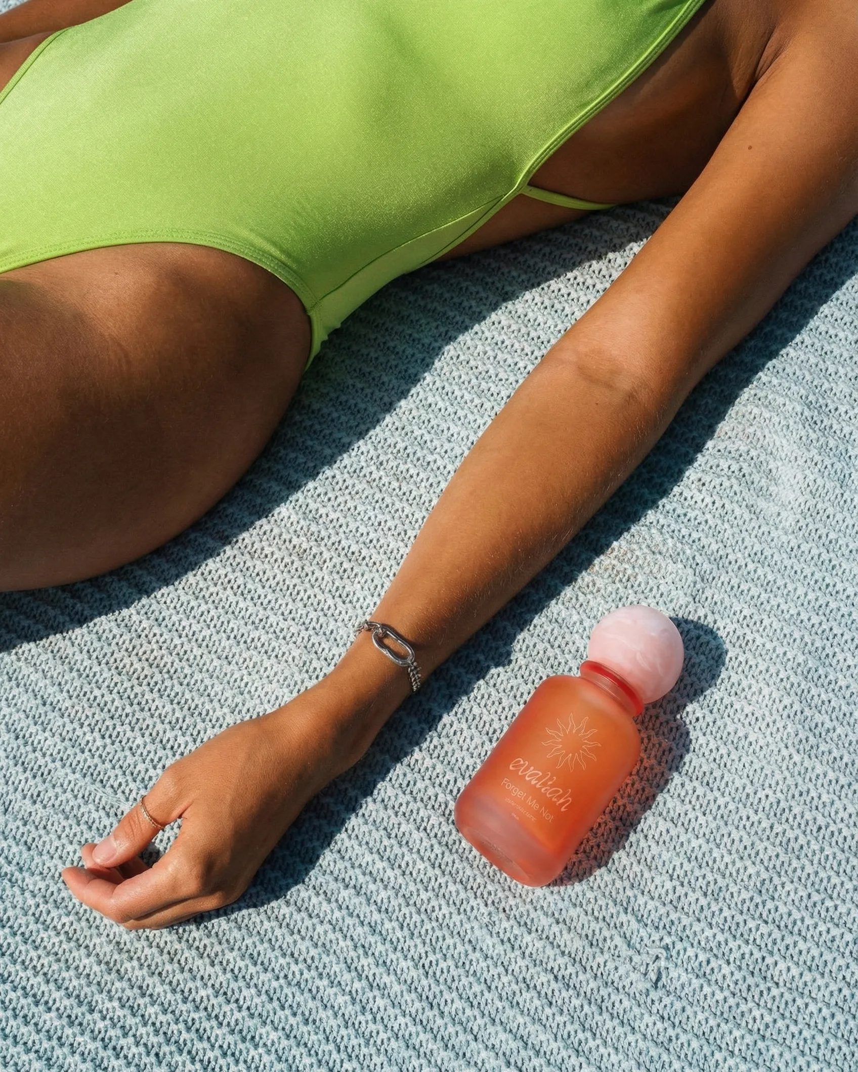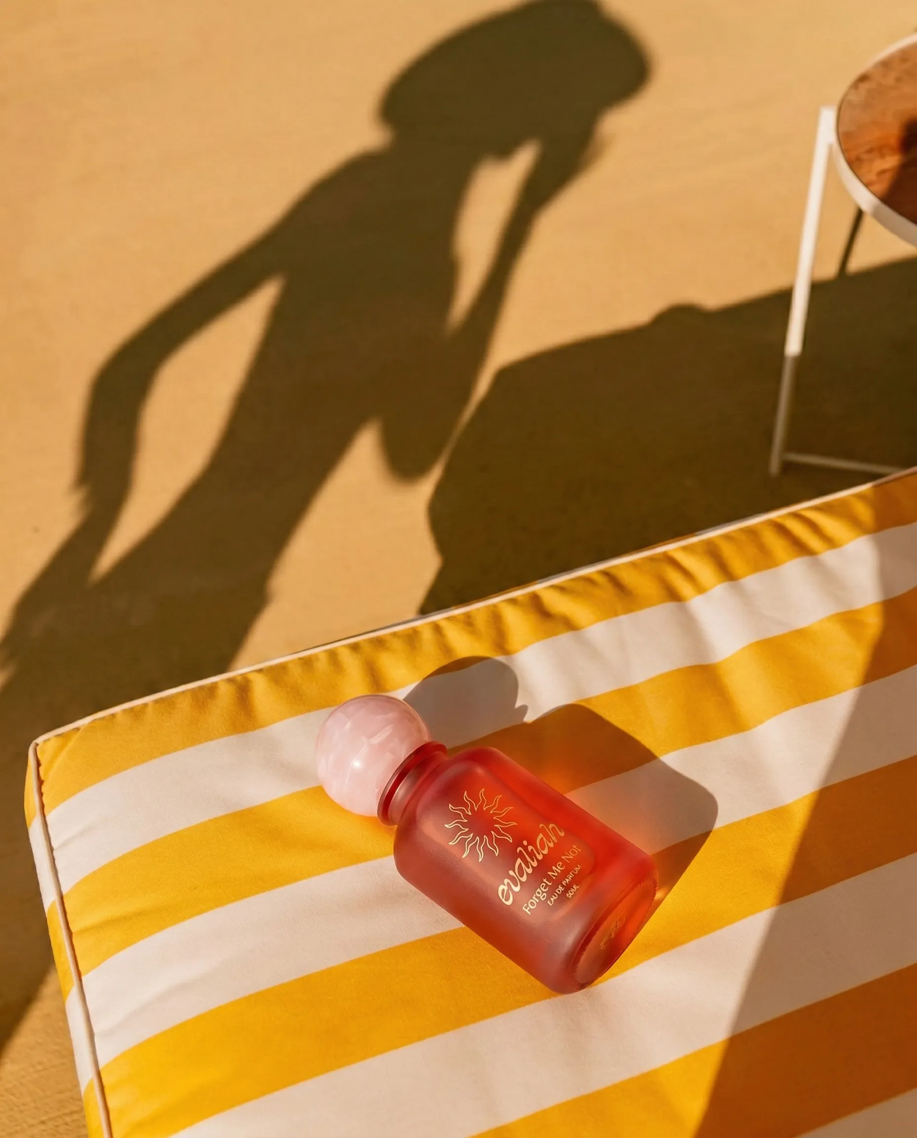 AI-generated campaign visuals for Evaliah — a fragrance brand inspired by sunlit days and carefree summer moments. This visual series places the product within warm coastal environments, combining sea water, golden light, and relaxed beachside settings to capture the feeling of sun on skin and the atmosphere of summer escape.