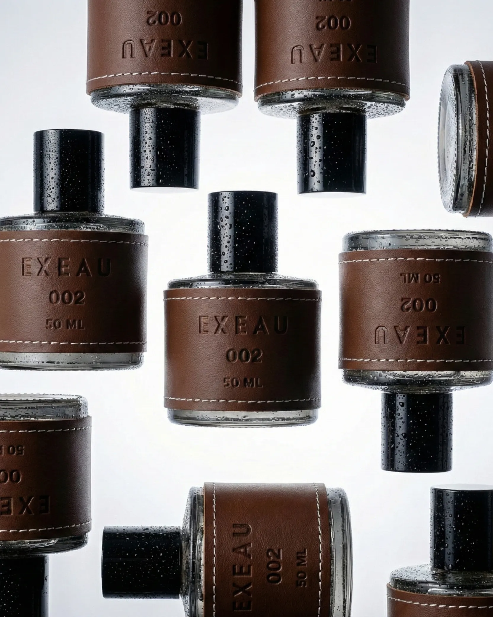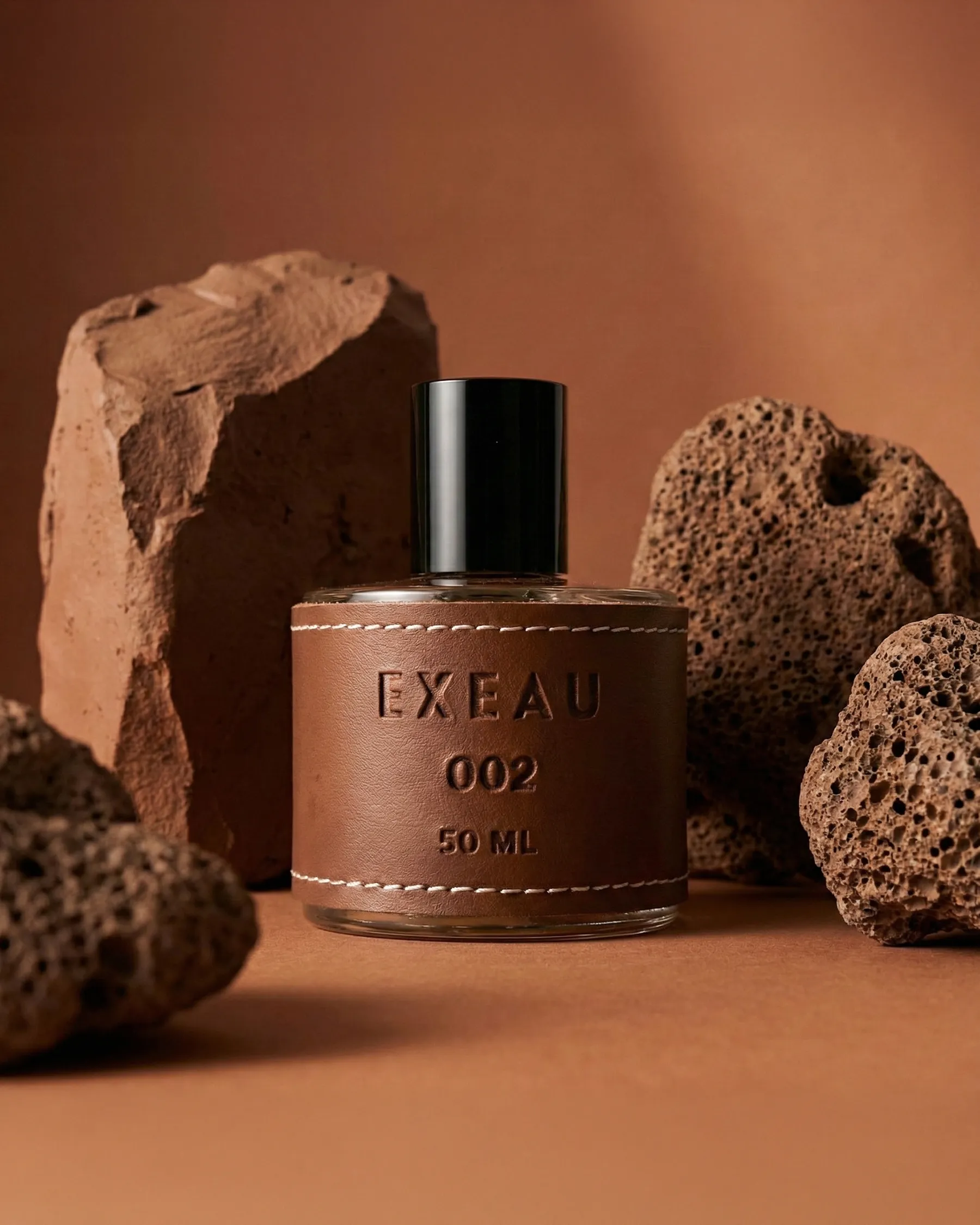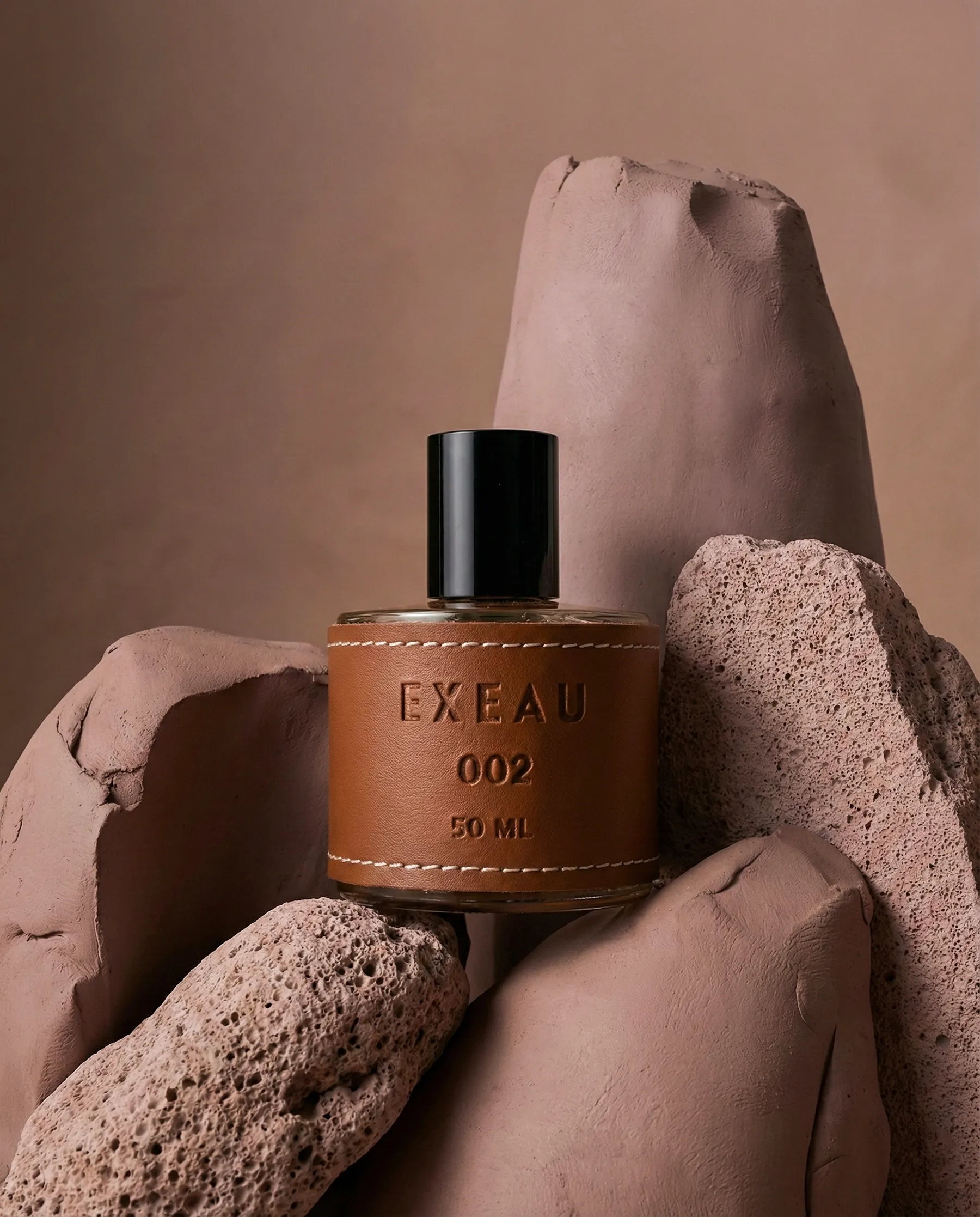AI-generated product photography for EXEAU — a contemporary fragrance brand defined by refined materials and understated luxury. This visual series explores texture, contrast, and atmosphere, pairing sculptural clay compositions with clean, high-clarity surfaces while maintaining realism and material precision.