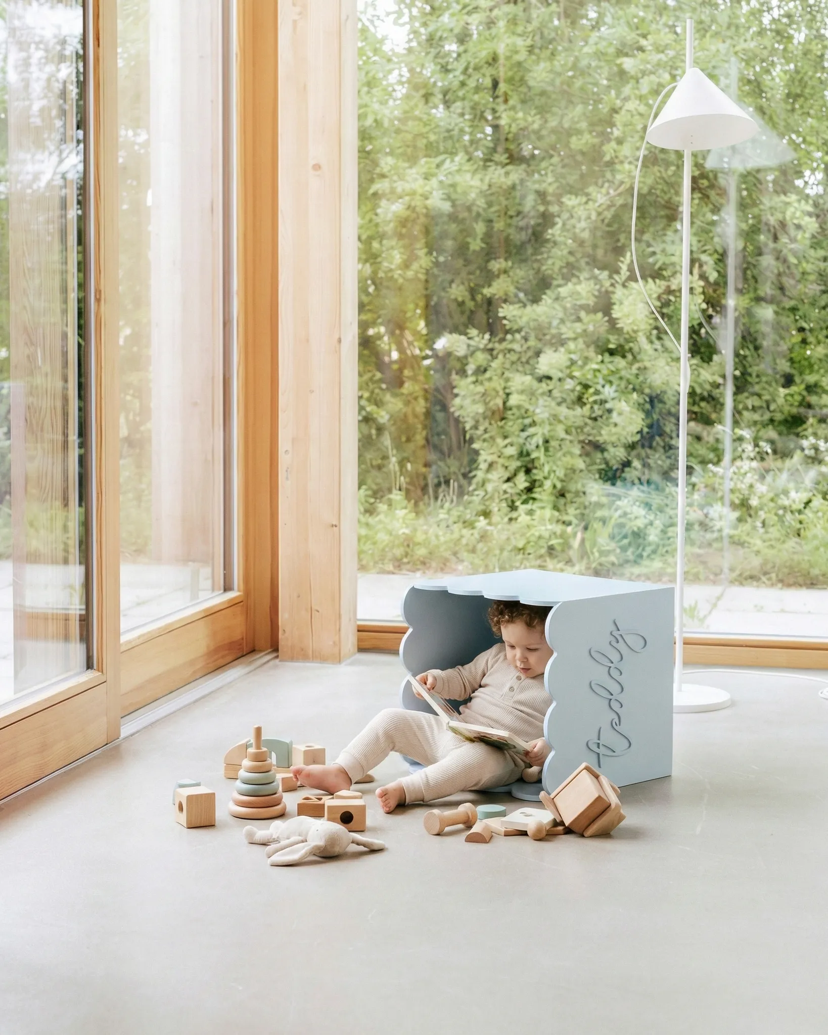 AI-generated campaign visuals for Frankie Meets Bonnie — a children’s furniture and lifestyle brand. This visual series places the product within calm, contemporary home environments, capturing quiet everyday moments of play, learning, and discovery. Soft natural light and minimal interiors highlight the piece as both functional furniture and part of a child’s daily world.