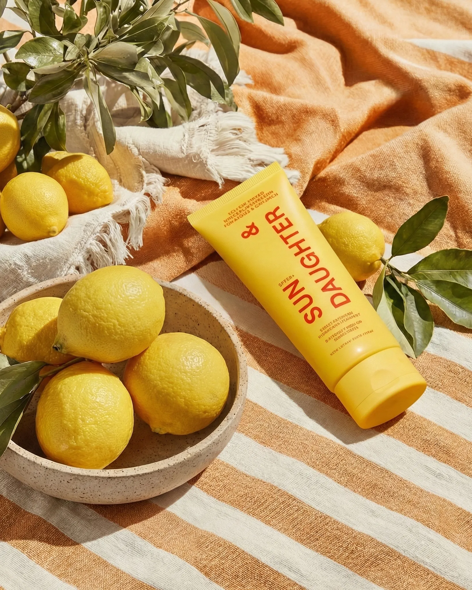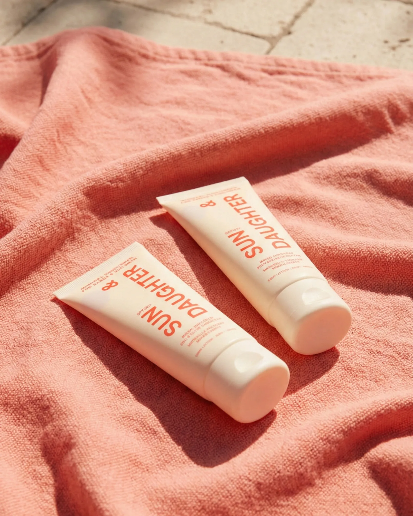 AI-generated product photography for Sun & Daughter — a modern suncare brand focused on everyday sun protection for families. This visual series captures the product in warm, playful summer settings, combining soft lifestyle moments with clean, sunlit compositions that reflect the brand’s bright, approachable identity.